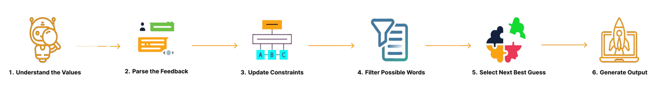 Below is a graphical representation of how our Wordle solver works to find answer words for the Wordle in mere seconds:
